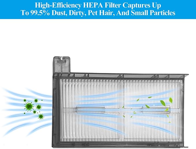 - ✅Efficient Cleaning Performance: The main brush effectively picks up dirt, debris, and pet hair from carpets and hard floors. The side brushes reach into edges and corners, ensuring no dust or dirt is left behind. The replacement x8 pro filters and mop pads also contribute to cleaner indoor air.