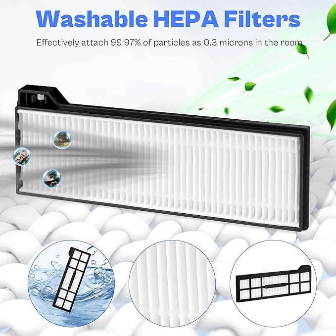 - Excellent cleaning ability: The roller brush replacement for Eufy X10 Pro Omni is made of high quality rubber and soft wool, and the side brush is made of nylon strip material. The combination of both can easily clear away debris and hair, some hidden stains around corners and edges. Filter can effectively filter dirt and other fine particles for excellent deep cleaning results, give you a real home cleaning experience