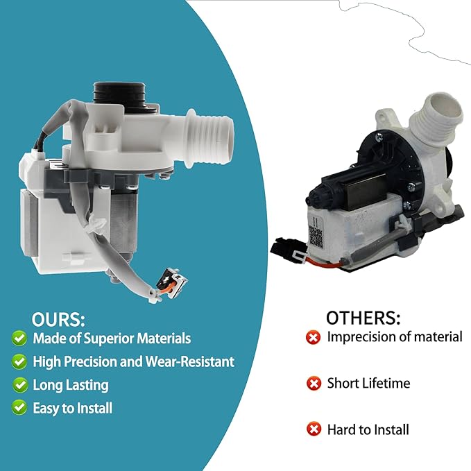 - 【Effectively Solve Problems】Replacing the washer drain pump ensures long-term, effective operation and resolves issues such as loud noise, water leakage, pump failure, and filter failure. Replacing the washer drain pump and filter assembly ensures continued efficient operation and helps prevent motor-related pump failures.