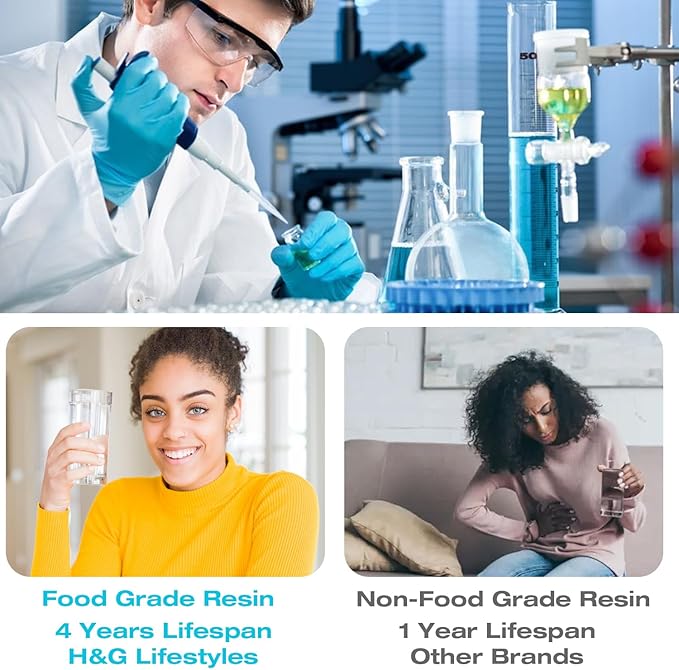 - NSF Certified Resin for Safe Drinking Water: The resin used in this water softener is NSF certified and food-grade, making it safe for drinking water, ensuring peace of mind for your family’s health.
