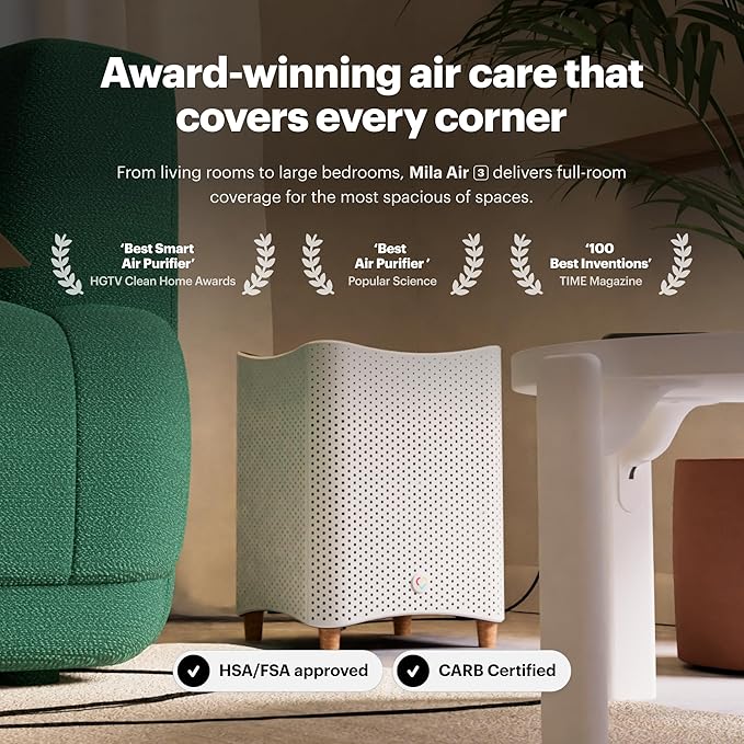 - SMART & WHISPER QUIET: Mila is the first HEPA air purifier smart enough to know when to quiet down with 8 custom modes - Sleep, White Noise, Energy Save, built-in Child Lock, and more. Download the Mila Air app for indoor and outdoor air quality updates.