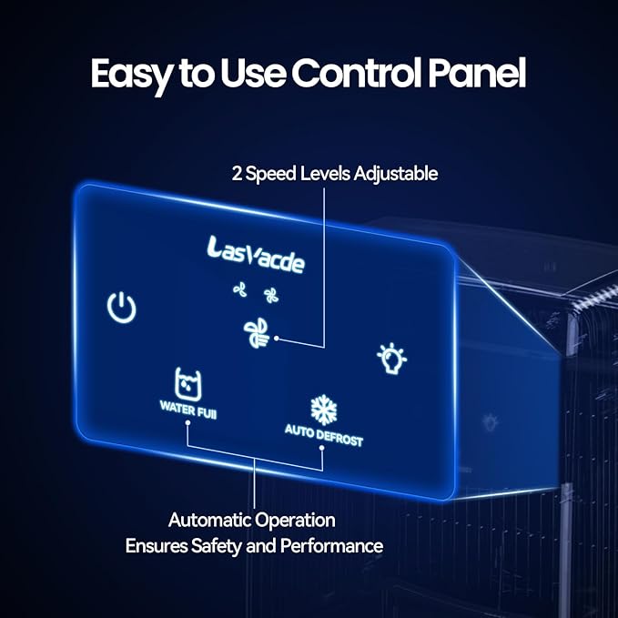 - 【Easy to Use Control Panel】 Two speed adjustable wind speed. Automatically stop working when the water tank is full to ensure safety. The defrosting function automatically operates to ensure performance.