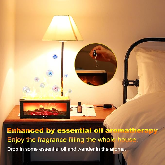 - 【Multi-Functional Design Humidifiers For Bedroom】: This flame diffuser combines a fireplace diffuser and humidifier flame for aromatherapy. Enjoy mini humidifier benefits with 7-color changing oil diffuser. Perfect as a room diffuser or desk humidifier.