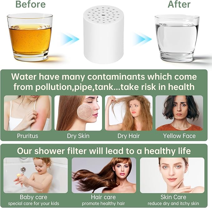 - Soften Water to Improve the Bathing Experience - Especially for people with sensitive skin and dry hair, prolonged use of hard water can be potentially damaging. The use of shower filter cartridge softening water, reduces limescale deposits and further cares for skin and hair