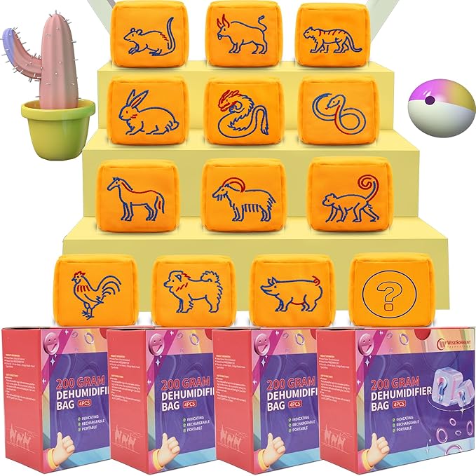 - Dehumidifier Bag : Dimension is 3" x 3" x 3" ; 200 gram/bag; 4 Packs/box; We created a fun design with 13 intricate embroidered animal patterns. Each box contains four different animals chosen at random, so the animals you receive may differ from those shown in the pictures. We hope our customers will be pleasantly surprised.