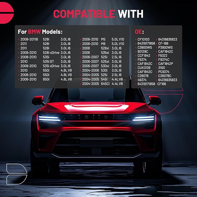 - [Replaces Part] Please check the OE No.: CF10103, 64316935823, 64319171858, CF-166, C3900WS, P3900WS, 90129C, CAF1842C, CCF1842, F6322, F9374, F9374C, CAF1842C, CAF1842P, CUK3139, 3100, CAF1842C, PC9374, C26078, C26078C, 49374, 64316935823, 64319171858, CF166
