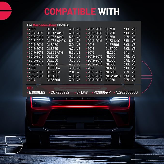 - [Vehicle Fitment] Compatible with Mercedes-Benz GLE400 2019, GLE43 AMG/GLS450/GLS550/GLS63 AMG/ 2017-2019, GLE300d/GLE400 2016-2017, GLE63 AMG/GLE63 AMG S 2016-2019, GLE350/GLE550 2016-2018, GLE550e 2018, GLS350d 2017, GLE350d/GLE400 2016, ML250/ML400 2015, GL350/GL550/GL63 AMG 2013-2016, GL450 2013-2014, GL450 2015-2016, ML350/ML550/ML63 AMG 2012-2015