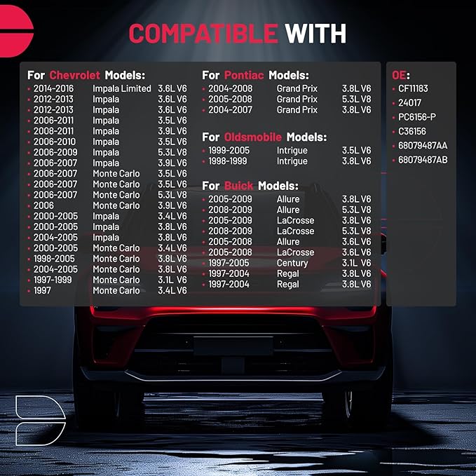 - [Vehicle Fitment] Compatible with Chevry Impala Limited 2014-2016, Impala 2000-2013, Monte Carlo 1997-2007; Compatible with Buick Allure/LaCrosse 2005-2009, Century 1997-2005, Regal 1997-2004; Compatible with Pontiac Grand Prix 2004-2008; Compatible with Oldsmobile Intrigue 1998-2005