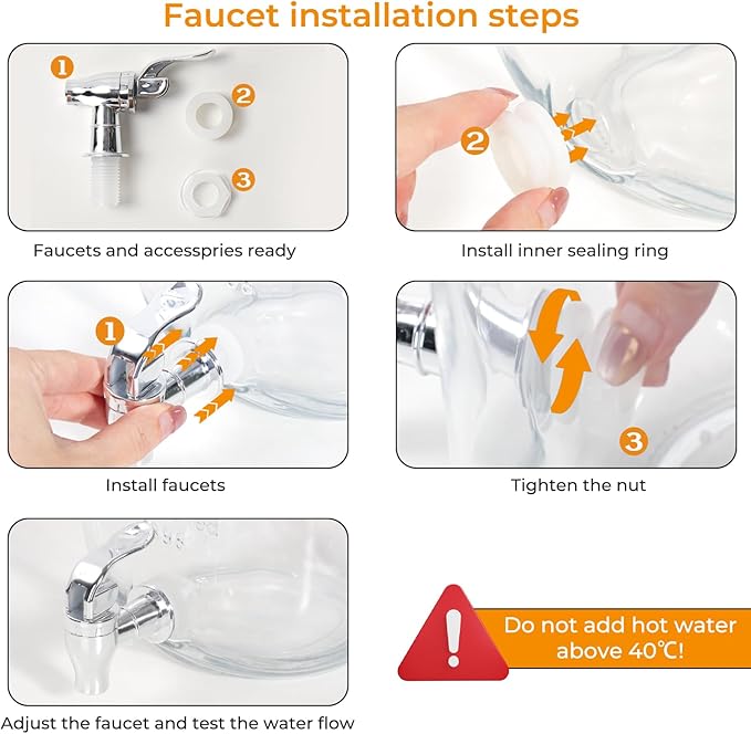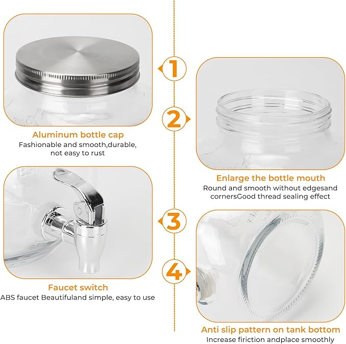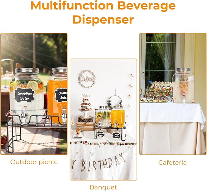 - Packaging Includes: 2 Pack 1 Gallon glass drink dispenser, 2 ABS Spigots, 2 tag labels, 1 metal bracket and a marker pen