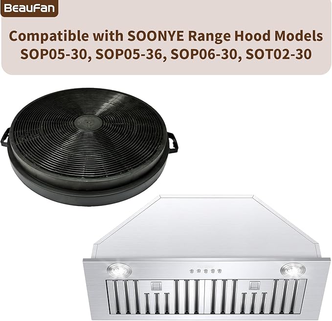 - Replacement for SOONYE Range Hood Carbon Filters for SOONYE range hood model SOP05-30, SOP05-36, SOP06-30, SOT02-30, Compare to Part# CF001