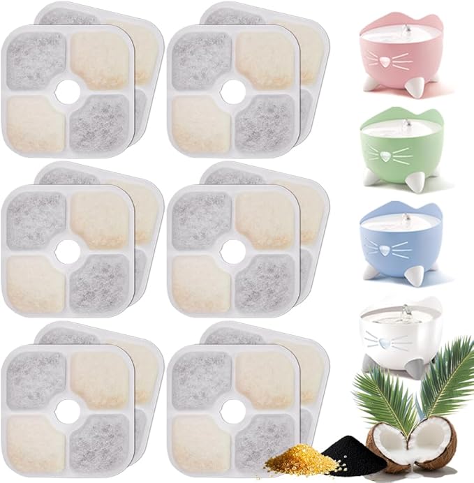 12-Pack Cat Fountain Filter Replacement Compatible with Catit PIXI Water Fountain 85oz/2.5L, Cat Water Fountain Filter Replacement Triple Action Water Filters
