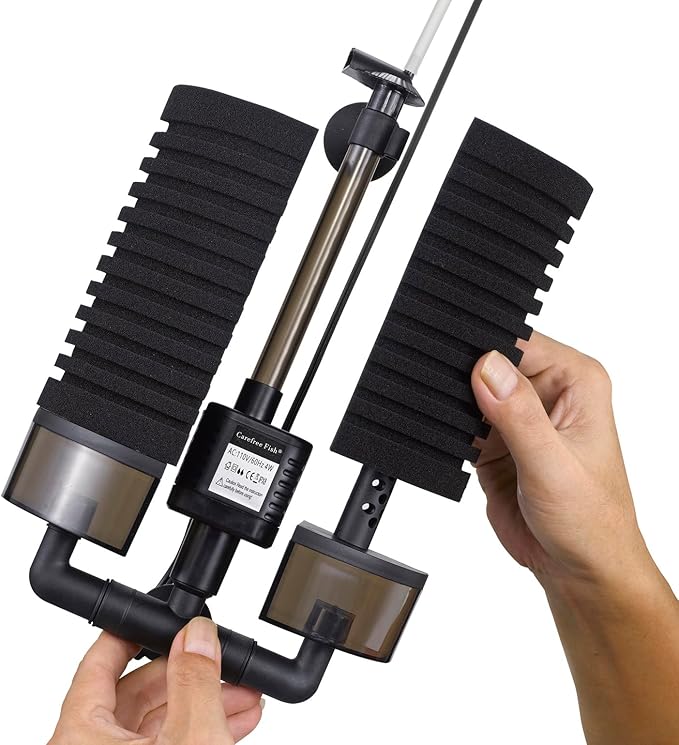 Carefree Fish Aquarium Filter with Water Pump 4 Sponges and 1 Bag of Filtered Ceramic Balls Fish Tank Quiet Filter for Salt Water and Fresh Water