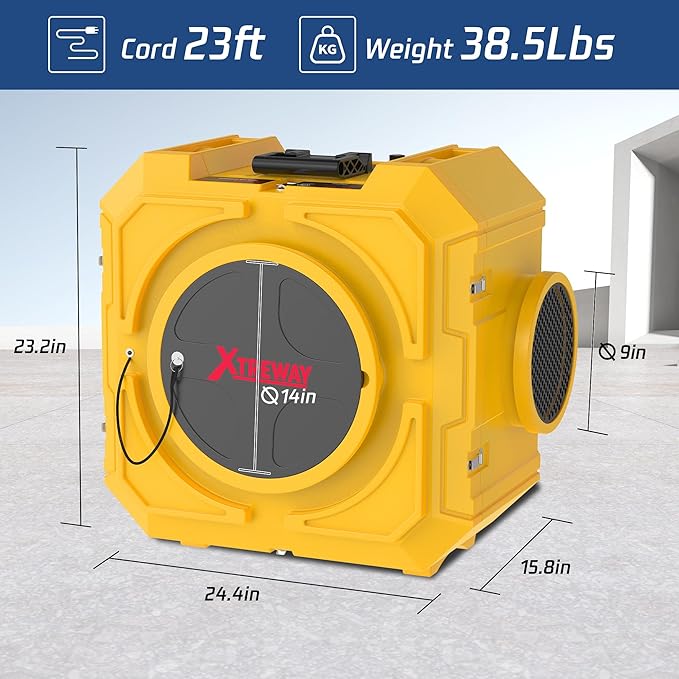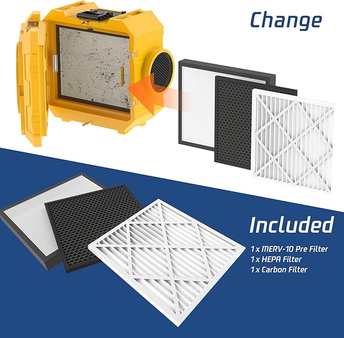 - 【Industrial-Grade Durability】This industrial air purifier features an ultra-rugged exterior, suitable for construction sites, sewage restoration, water damage restoration and fire damage repair. It also comes with a user-friendly control panel, knob-style airflow adjustment, timer reset function, and hepa filter replacement reminders.