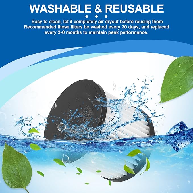 - 【Washable and Durable Design】Made from high-quality materials, these washable vacuum filters can be rinsed and reused multiple times. For optimal performance, we recommend replacing them every 3-6 months, depending on usage.