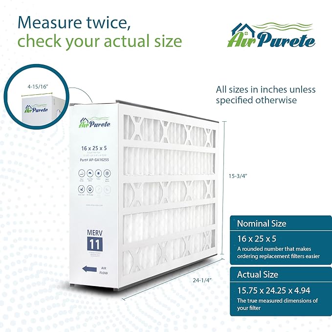 General Aire 4541, 259112-105 Replacement Filter | AirPurete AP-GA16255 | Actual size: 15.75" x 24.25" x 4.94" (16" x 25" x 5") | 15 3/4 x 25 1/4 x 4 15/16 | Pack of 2