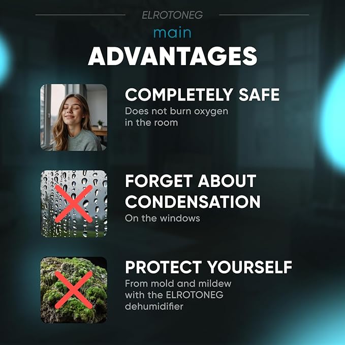 - Advanced Home Dehumidifier: Modern dehumidifier from brand ELRATONEG use semiconductor condensation technology, which allows efficient and silent removal of moisture while maintaining humidity levels below 45%. This helps to create a comfortable and healthy atmosphere in the living room.