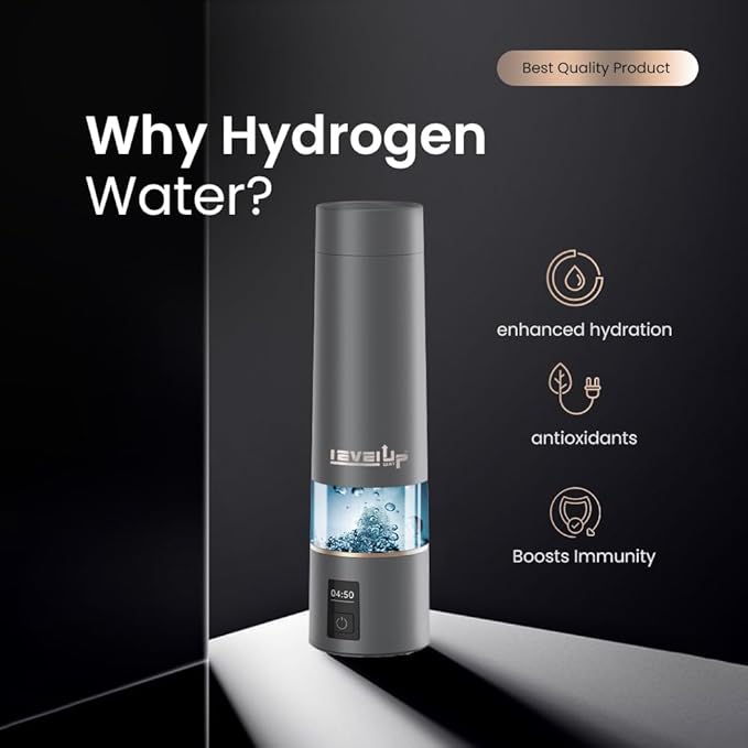 - [PURE HYDROGEN WATER WITH ADVANCED TECHNOLOGY]: Utilizing state of the art SPE/PEM electrolysis, The LevelUpWay Hydrogen Water Bottle generates up to 5000 PPB of molecular hydrogen. This ensures safe and toxin-free water by removing harmful byproducts such as chlorine and hydrogen peroxide.