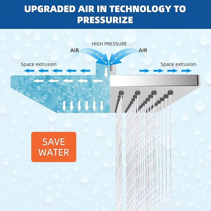 - High Pressure Shower Head: The Hibbent 6-inch shower head, with its air-in technology, provides a luxurious rain-like spray that envelops the body in a soothing, enveloping downpour. This dynamic, high-pressure massage experience is delivered even at low water pressure levels, while the chrome finish adds a sleek, modern elegance to your bathroom's decor