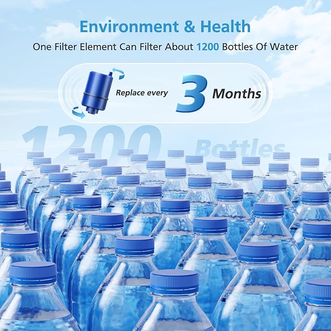 - 【Durable & Long-Lasting】Experience the convenience of filtering over 100 gallons of water without replacement. One filter can more safely filter water or 3 months of regular use, saving you money and reducing plastic waste. Environmental protection and drinking water safety kill two birds with one stone.