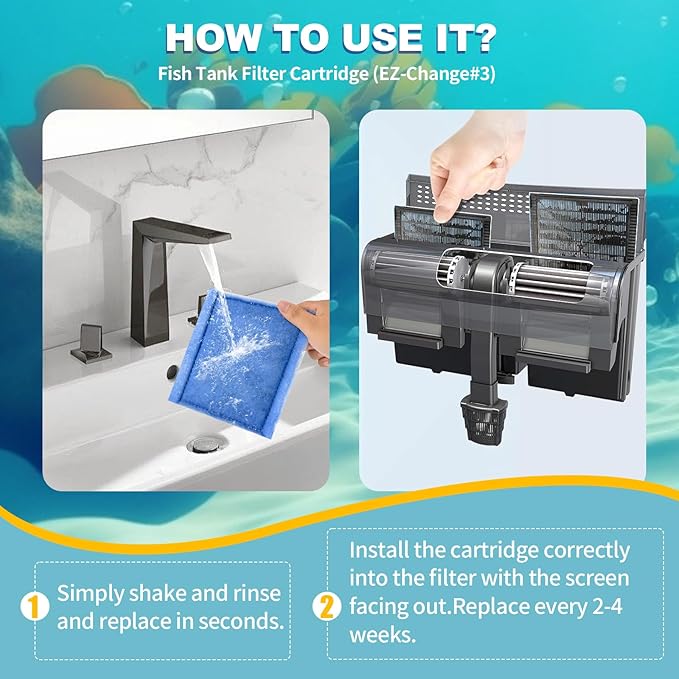 - Replace the filter regularly:To keep the water in the fish tank clean, please replace the aquarium filter every 2-4 weeks for optimum performance