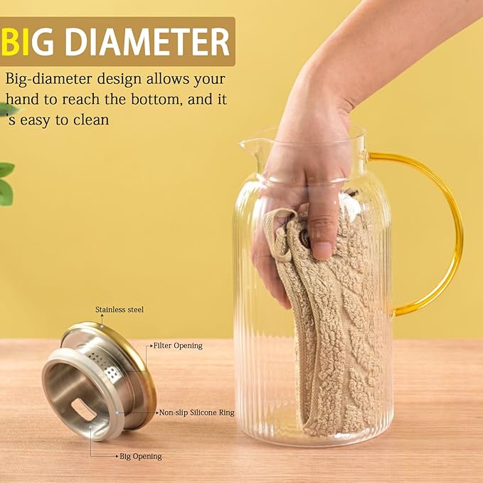 - Ligthweight Design:Cold brew glass pitcher is designed to be lightweight and ensure it can withstand weight.Not only a morden glass pitcher, but also a decoration.Let's say goodbye to the bulky old pitcher and try the new glass water pitcher