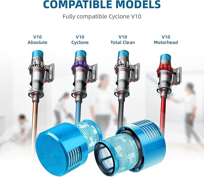 - ✅【Convenience Pack】This valuable set includes 2-Pack Premium replacement 𝗛𝗘𝗣𝗔 filters and small brush, providing extended convenience and value. Always have spare filters ready, ensuring uninterrupted vacuum efficiency, especially important in pet-active homes needing regular cleaning. Compare to Part # 969082-01. These vacuum filters work well and fit your Dyson V10, Dyson V10 Series, Dyson V10 Filter, Dyson Cyclone V10 Filter, Dyson Cyclone V10 Absolute, Dyson Cyclone V10, Dyson Cyclone V10 Animal, Dyson Cyclone V10 Animal Pro, Dyson Cyclone V10 Motorhead (Red), Dyson Cyclone V10 Total Clean, SV12 V10 Motorhead , Dyson V10 Animal Filter, Dyson V10 Filter Replacement.