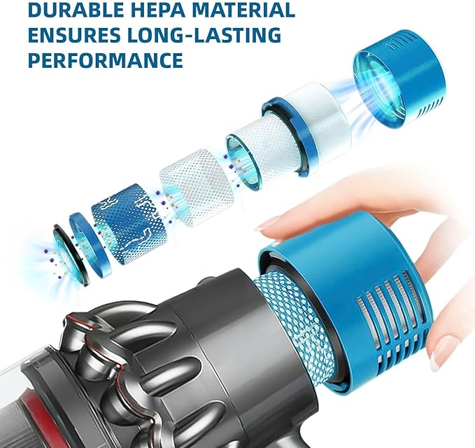 - ✅ 【Advanced Blue 𝗛𝗘𝗣𝗔 Filter Design】The special Blue Edition 𝗛𝗘𝗣𝗔 filter features upgraded, high-efficiency filtration material specifically designed for Dyson V10 vacuums. Expertly engineered to trap fine dust, pet hair, dander, and other microscopic particles, this filter prevents pollutants from circulating back into your home. Bee Filter delivers exceptional filtration performance, ideal for households with cats, dogs, and other pets. The distinctive blue color highlights superior quality and perfectly complements your Dyson V10 vacuum cleaner.