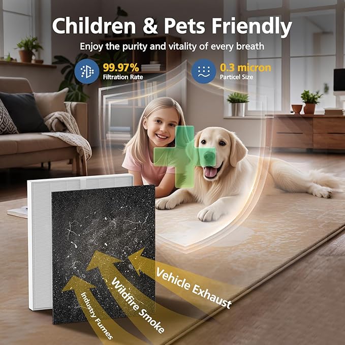 - 【Intense Smoke Customized Filter】This customized 200M filter for homes is dedicated to bringing fresh air into your home environment. It effectively filters out wildfire smoke, industry fumes, vehicle exhaust and other harmful gases. All-round protection for you and your family's breathing.
