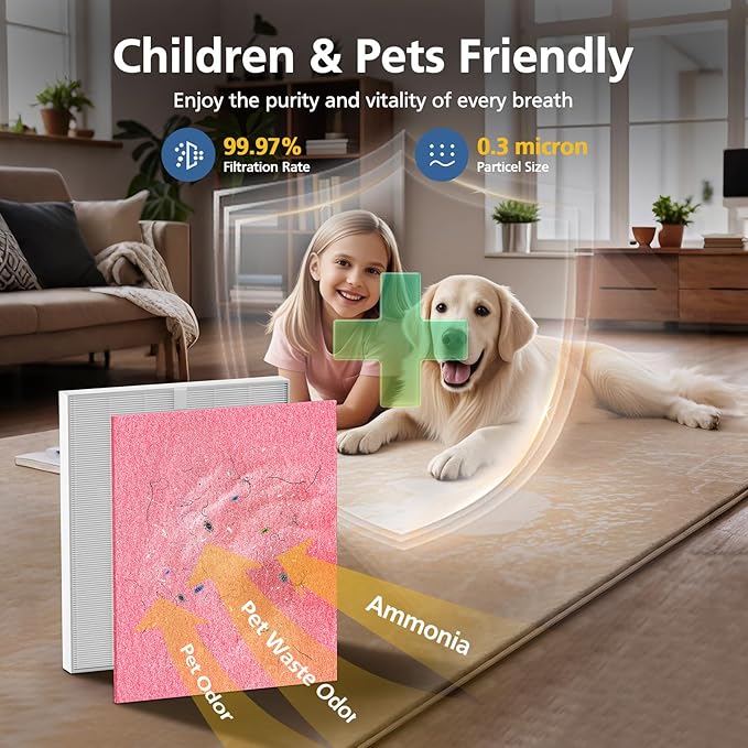 - 【Pet Care Filter】This HP152HH filter is customized for pet-loving families to promote harmonious coexistence between humans and pets. It can effectively attach ammonia, pet odors, pet waste odors and more. Let you say goodbye to pet odor troubles and create a fresh, pet-friendly living environment.