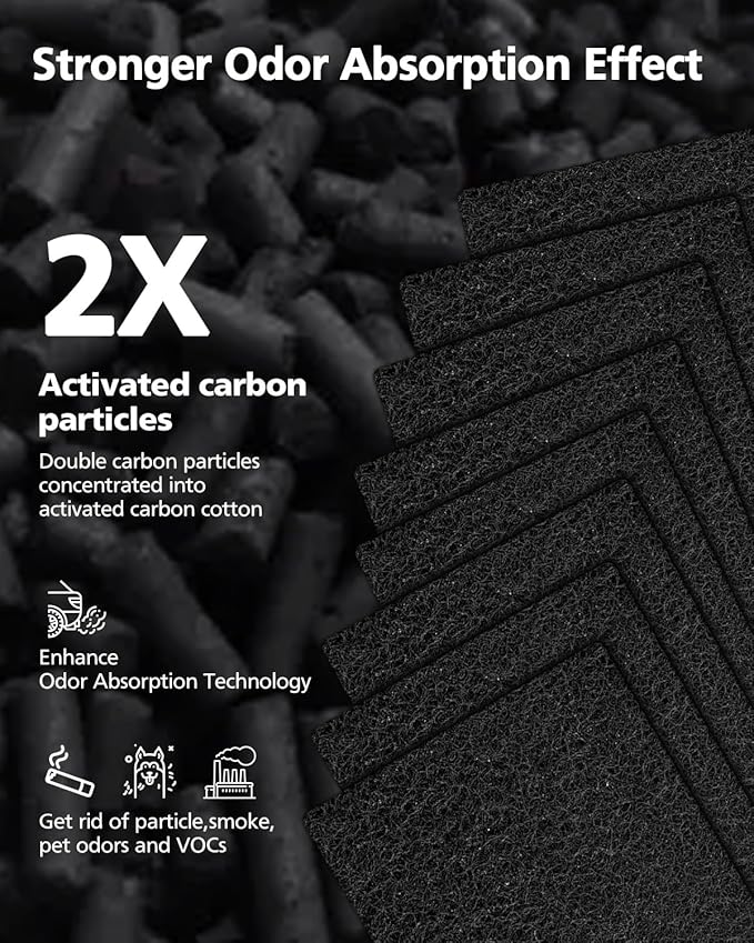 - ELIMINATES UNWANTED ODORS: The activated carbon pre-filter effectively neutralizes lingering pet odors while filtering large particles like hair, fur, and fibers. Breathe easier and enjoy a fresher home without worrying about unpleasant smells.