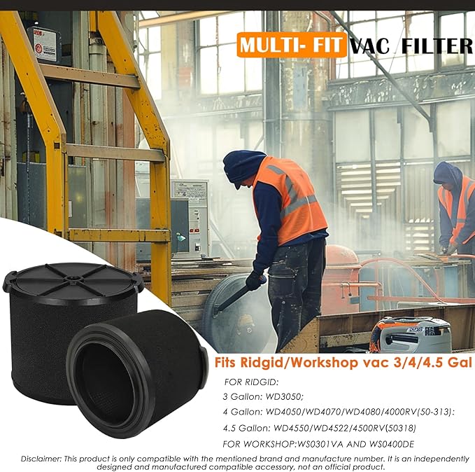 - Universal Fit: Universal VF3700/WS14045F replacement filter compatible with Rigid portable wet dry Vacs 3 gallon: WD30500; 4 gallon: WD4050/WD40700/WD4080/4000RV(50313); 4.5 gallon: WD4550/WD4522/4500RV(50318). Also fits Workshop 3-4.5 Gallon: WS0301VA and WS0400DE. Disclaimer: Brand and model number for reference only, this is not an OEM product, LVJUSEN is an independent brand
