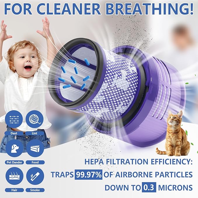 - 【Powerful Vacuum】A premium alternative to the vacuum filter of the Dyson SV18 Digital Slim Cordless Vacuum Cleaner. It can capture 99.99% of particles as small as 0.3 microns, providing cleaner and healthier air for your home