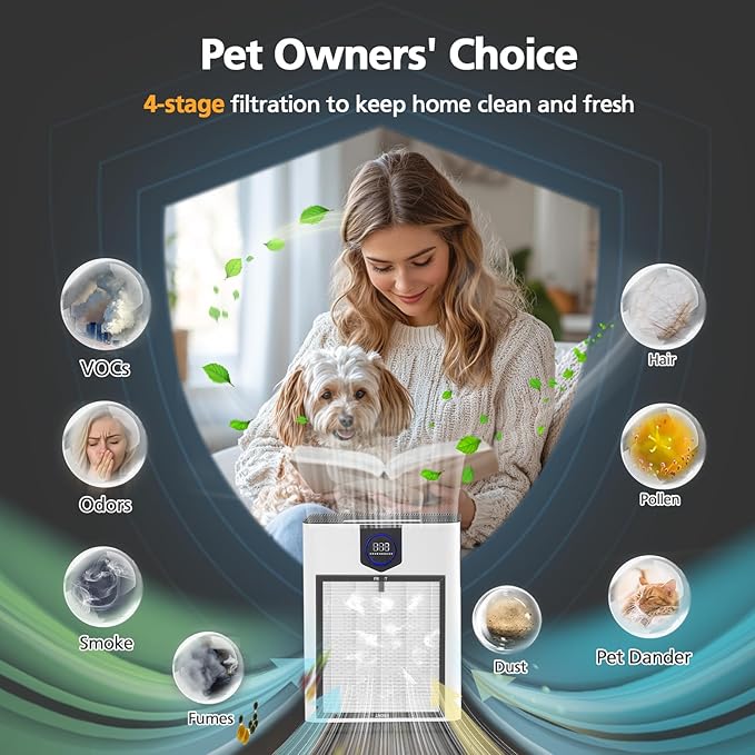 - 【3-Layer Filtration】: The fine mesh pre-filter is the first protective to absord larger indoor airborne particles and help extend the life of the HEPA filter. HEPA filter can absorb fine airborne particles that are difficult to see with the naked eye. Last layer filled with 2 times more activated carbon particles, which is more powerful in absorbing odors and bad smells. 3 stage filter provides fresh air to make your home more livable.