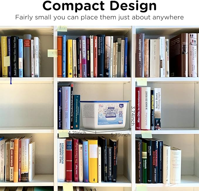 - Compact & Versatile Placement: With its small and portable design, the W&E Mart moisture absorber box works great for closets, bathrooms, basements, closets, laundry rooms, refrigerators, RVs, ships, etc.