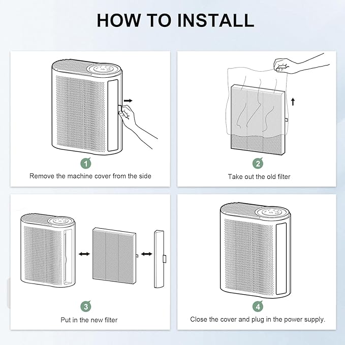 - EASY TO REPLACE: Simply open the filter cover, grab the rope on the side to pull out. You can easily take out or replace the filter, say goodbye to the hassle of replacing filters! Replace the True HEPA MK04 filter every 3-6 months depends on your usage