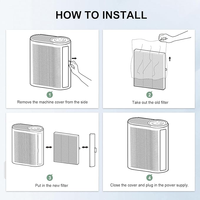 - EASY TO REPLACE: Simply open the filter cover, grab the rope on the side to pull out. You can easily take out or replace the filter, say goodbye to the hassle of replacing filters! Replace the True HEPA MK04 filter every 3-6 months depends on your usage