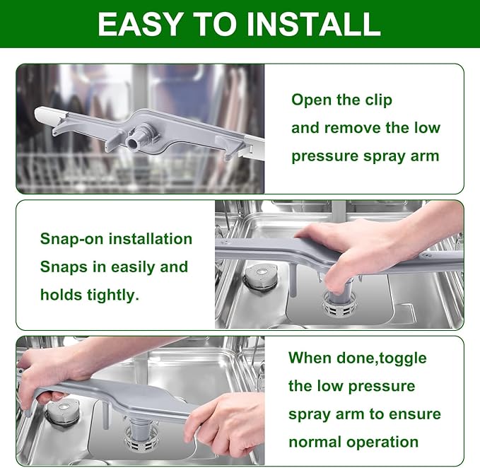 - Solve the problem:154568002 Dishwasher Lower Spray Arm Located on the lower half of the dishwasher,the lower spray arm rotates and sprays water to clean the dishes in the washer.It allows you to fix many issues,not cleaning dishes properly,dishes are not clean,Leaking,Noisy,Not draining.You can repair your dishwasher by replacing 154568002 Dishwasher Spray Arm,getting your dishwasher to work.