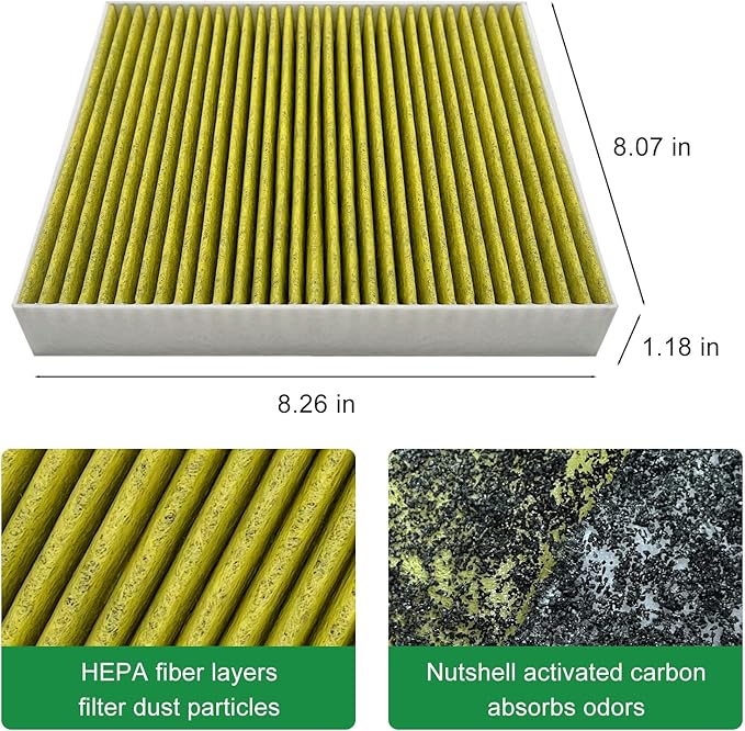 - 【Recommend to replace】Buy cabin and engine air filters together to save money, Recommend to replace every 12 months or 12,000 miles. (or as recommended in the owner's manual) to improve performance; Make sure your car engine has clean and efficient air flow. Keep breathing clean air at all times to improve driving comfort.