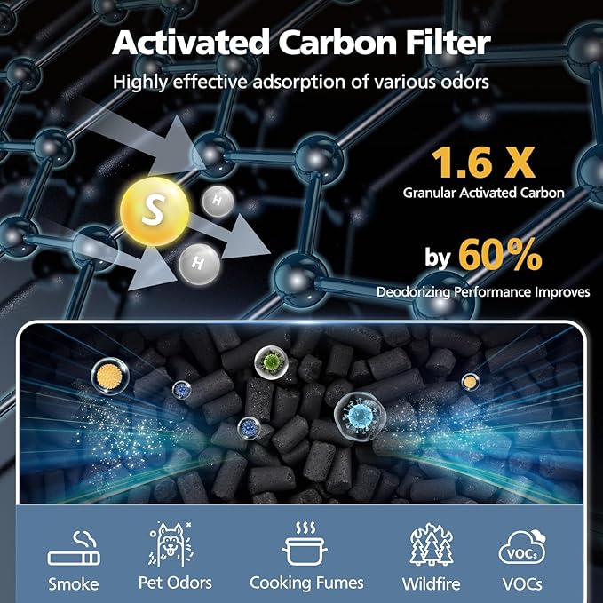 - πππππππππ ππππππ π πππππ - Upgraded honeycomb granular activated carbon physically attaches unwanted odors and fumes, such as smoke, cooking odors, pet odors, VOCS, etc. Designed to provide intimate protection for families with children and pets.