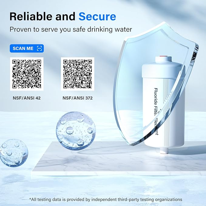- 【90% Fluoride Reduction】 The Purewell Fluoride Filter is made from advanced fluoride removal material. Unlike traditional alumina-based filters (which can pose health risks), our fluoride filter uses a safer, more advanced filtration media to remove up to 90% of fluoride. Plus, it's NSF/ANSI 372 lead-free certified, so you never have to worry about harmful leaks or contaminants.