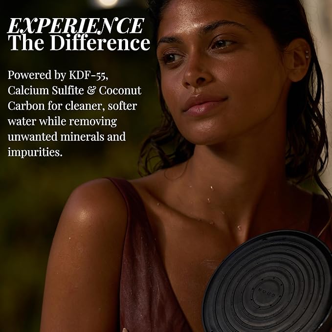 - Advanced Triple-Filtration Technology - NUUD’s showerhead filter features a powerful triple-filtration system using KDF-55, calcium sulfite, and activated carbon - helps to reduce chlorine, heavy metals, and other harmful substances. Experience noticeably cleaner, gentler water that supports your skin, scalp, and hair health. This is the shower head with filters your routine has been missing.