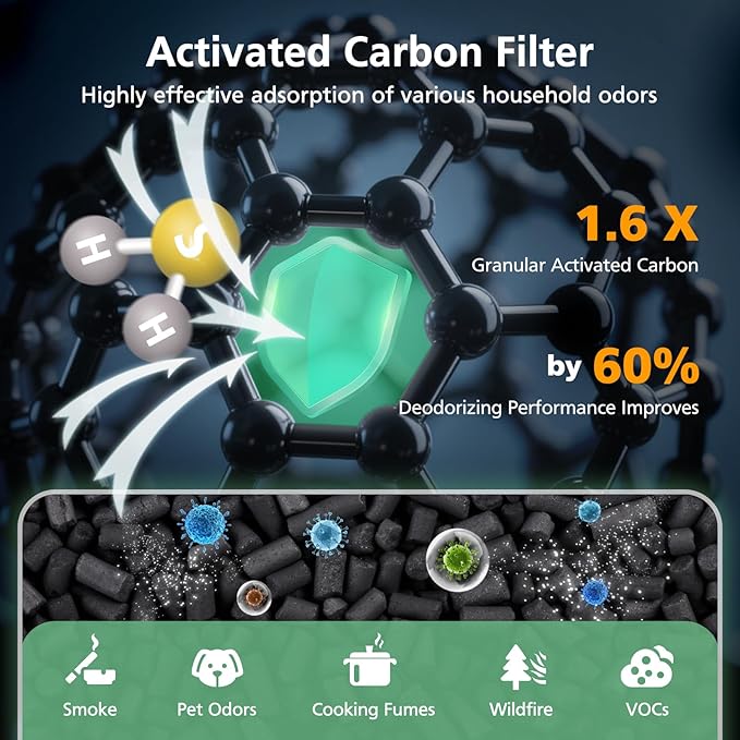 - 𝐇𝐈𝐆𝐇 𝐏𝐄𝐑𝐅𝐎𝐑𝐌𝐀𝐍𝐂𝐄 - Our sprout replacement filters have high performance air filtration, which can effectively absorb airborne particles and harmful gases, such as dust, pollen, pet dander and odors, smoke, car exhaust, etc. It continuously improves indoor air and provides fresh, healthy air for your family.