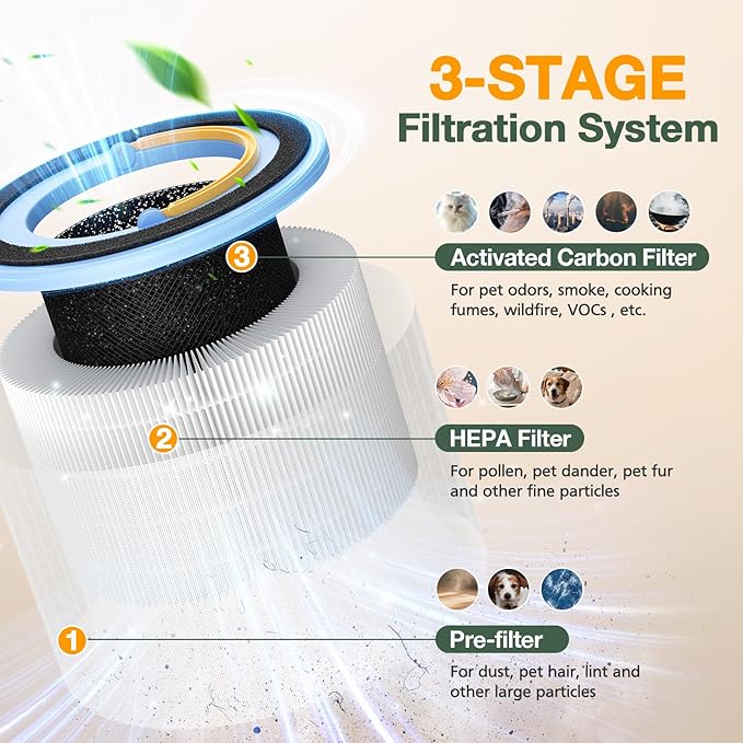- 𝟑-𝐒𝐓𝐀𝐆𝐄 𝐅𝐈𝐋𝐓𝐑𝐀𝐓𝐈𝐎𝐍 𝐒𝐘𝐒𝐓𝐄𝐌 - The sprout replacement filter consists of 3-layer filtration system, including the Pre-filter, the HEPA Filter, and the High-efficiency Activated Carbon Filter. Protect your baby's breathing health.