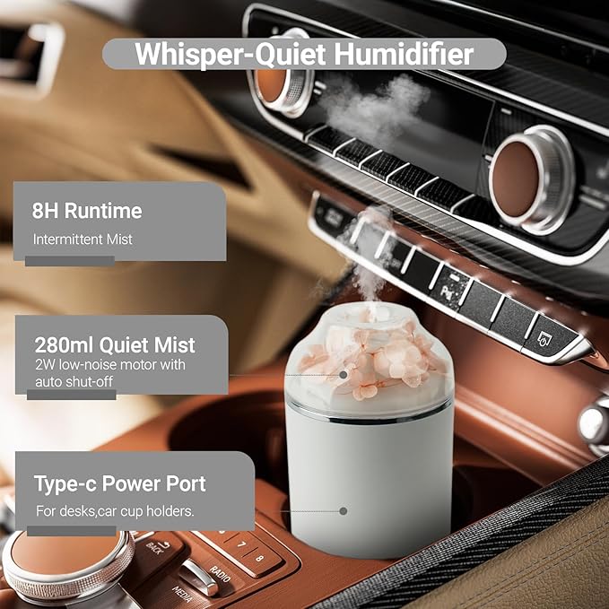 - 【Multi-Surface Compatibility】 Covers 10-20㎡ spaces. Use in bedrooms, offices, or as a car humidifier to combat dry air.