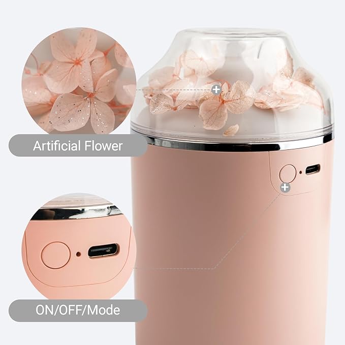 Portable USB Humidifier with 7-Color Mood Light | 280ml Quiet Mist for Bedroom, Office, Car | Auto Shut-Off & 8H Runtime (Pink)