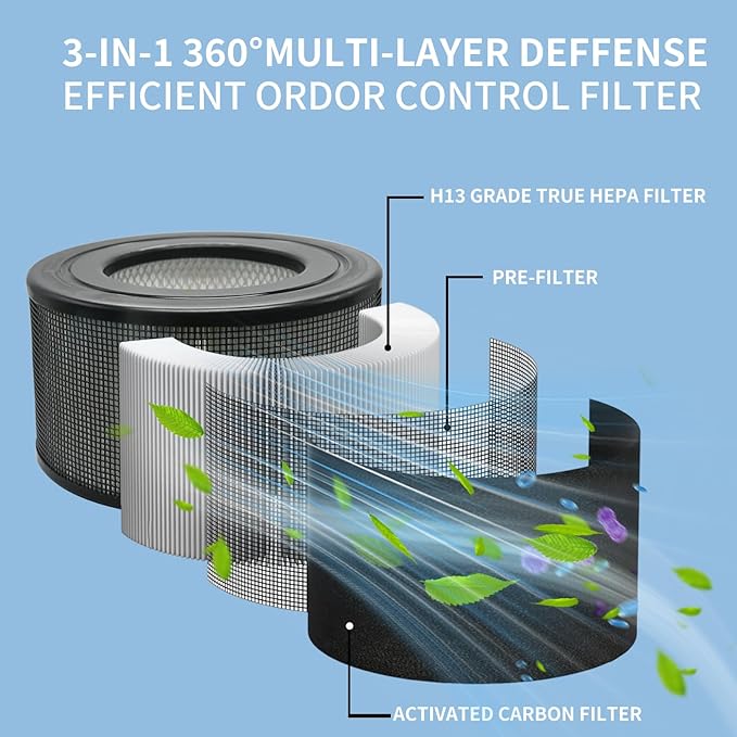 - Regularly Replacement - True HEPA filter lasts up to one year, carbon pre-filter wraps last 3-4 months depending on usage and environment