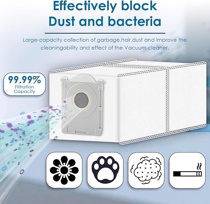 - 【Powerful Dust Bags】 Unlike the traditional cleaning method, using our X8 PRO OMNI/ T50 PRO Omni/ T50 MAX PRO Omni dust bag, the garbage and dust can be picked up and disposed easily. Meanwhile, no flying dust and secondary pollution will be caused to the environment and human body. The dust bag can hold your household garbage of several weeks.