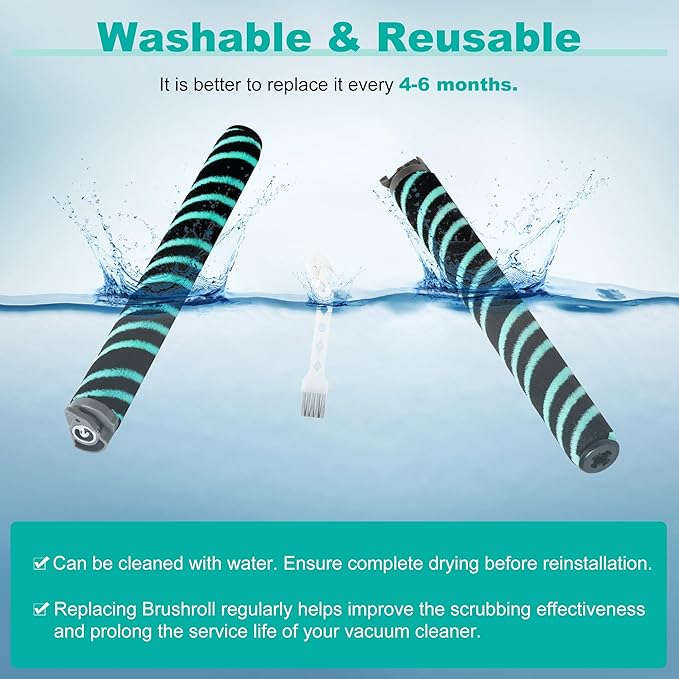 - 【Washable & Reusable】Maximize cost-efficiency by rinsing our Soft Brush Roller thoroughly with clean water, allowing them to dry thoroughly, and reusing them. For peak performance, we recommend replacing the Brushroll every 4-6 months to help extend the lifespan of your vacuum cleaner