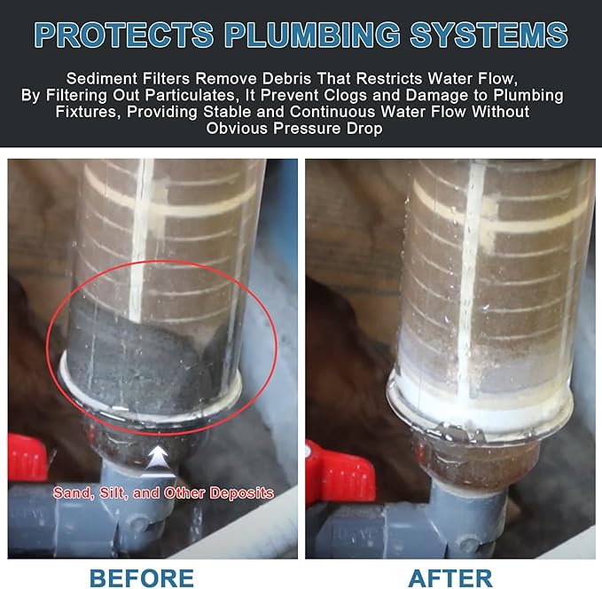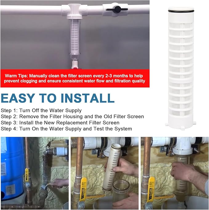 - 【Protects Plumbing Systems】: Spin down sediment filter screen replacement removes debris that restrict water flow, By filtering out particulates, it prevents clogs and damage to plumbing fixtures, providing with stable and continuous water flow without obvious pressure drop