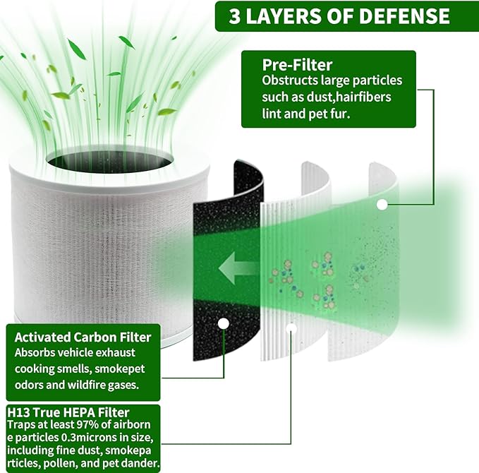 - Essential for Healthy Living, 24/7 Protection:The HEPA layer traps ultrafine particles, while activated carbon neutralizes odors. Dual protection creates a hypoallergenic environment, perfect for families with infants, pets, or respiratory sensitivities.